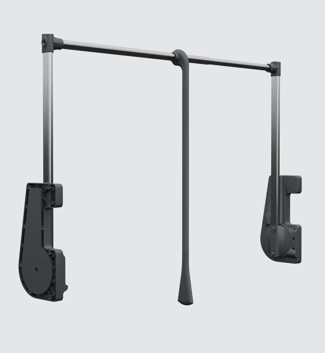 • Système suspendu : se fixe sous tablette ou barre, maximisant l’espace en hauteur.